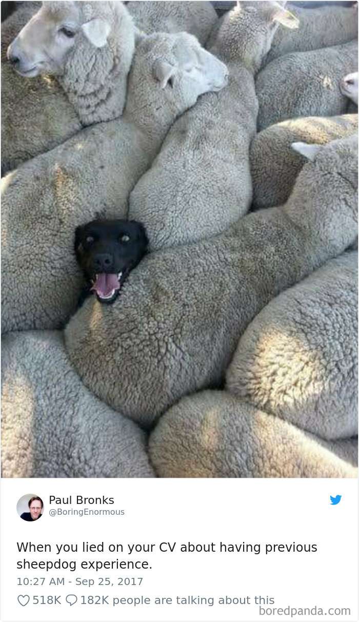 ▼「當你在履歷上謊稱自己有養牧羊犬的經驗。」