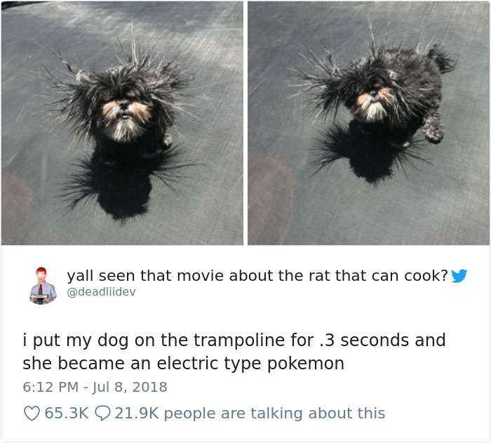 ▼「我把狗狗放在跳床上,3秒後牠變成了電屬性的寶可夢。」
