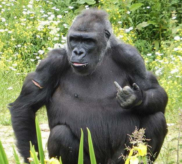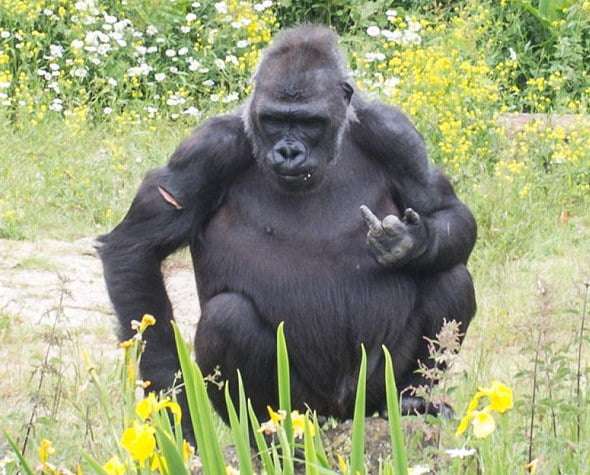 ▼這不是第一隻對人類豎中指,表達不滿的大猩猩。