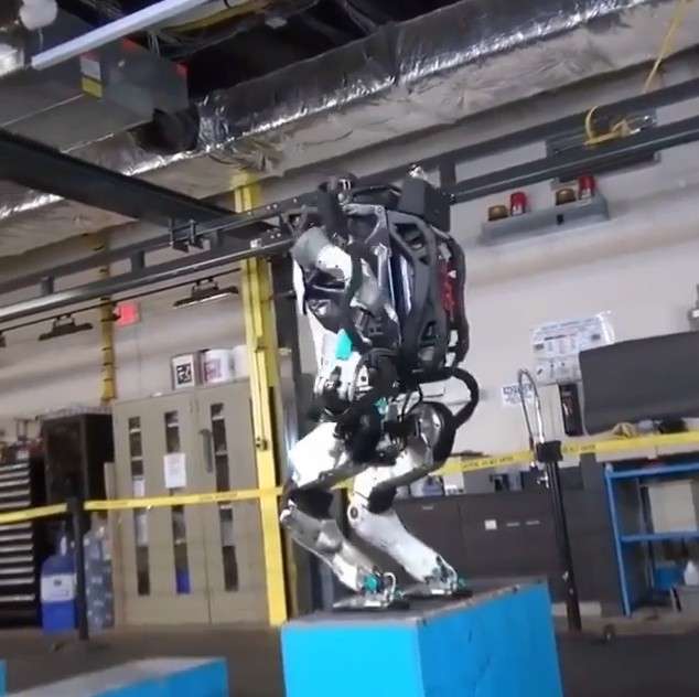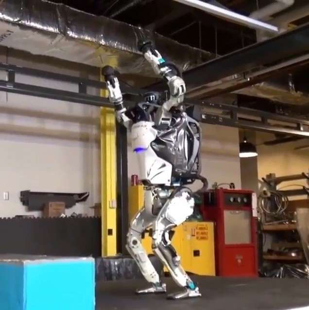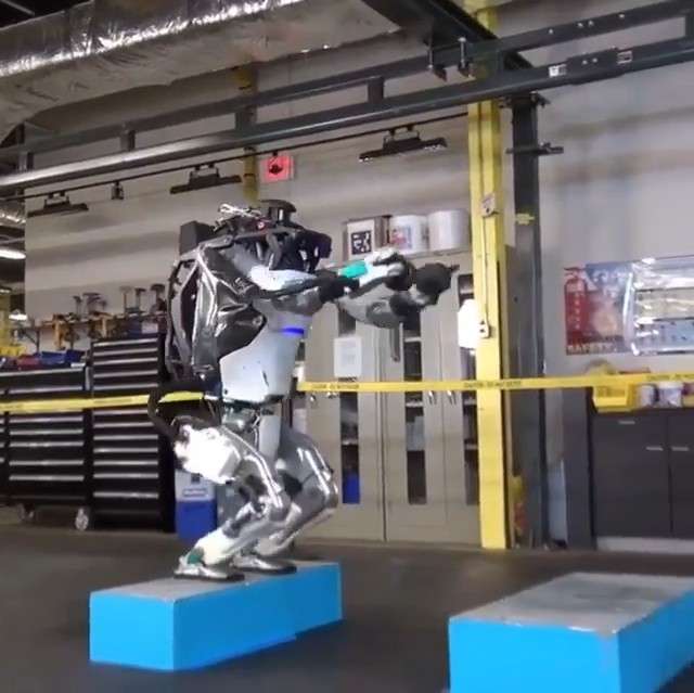 ▼影片一開始,一個機器人靈活的跳到了障礙物上,那舉動跟我們印象中的機器人差很多!