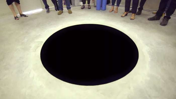 ▼Anish使用一種叫「Vantablack」的黑色塗料塗抹大洞的外牆。這種塗料是Anish的專利,在實驗室的碳奈米管中捕獲光子,吸光率達99.965%,塗上後完全看不出深度、邊界。