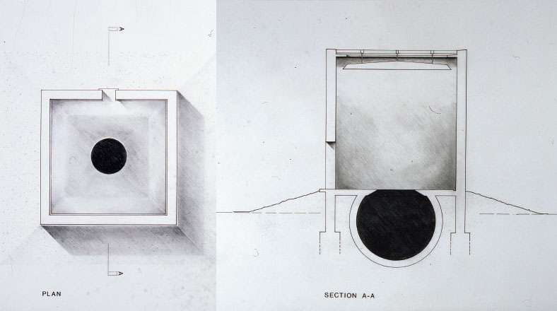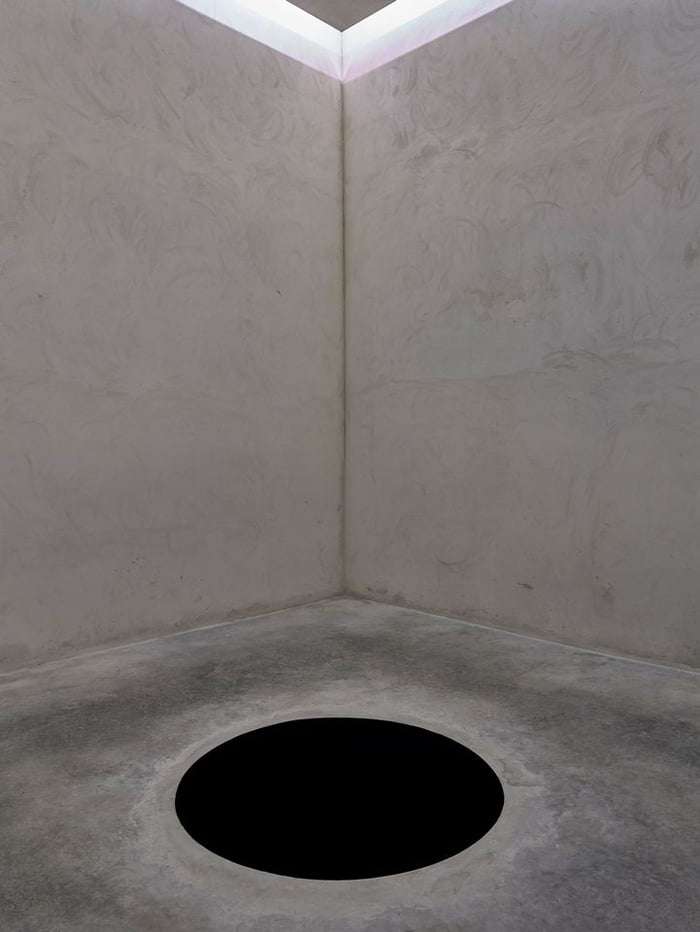 ▼它是混凝土立方體,中間有一個2.5米深、外牆塗黑的洞,一眼看去有一種「視覺錯覺」的效果。