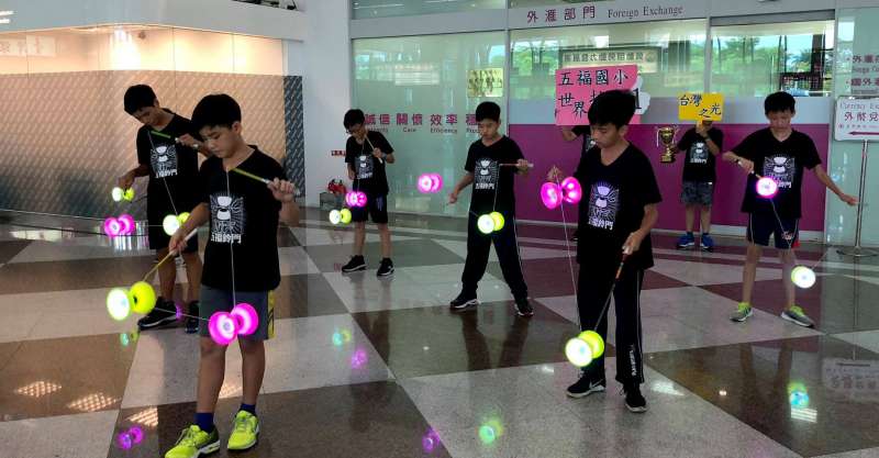 ▼五福國小扯鈴隊16年來的成績非常厲害,曾3度獲僑委會邀請到美加表演交流。稱霸國內亞洲盃等8項比賽後,他們決定首度衝出國,第一次參加國際賽就拿下冠軍!