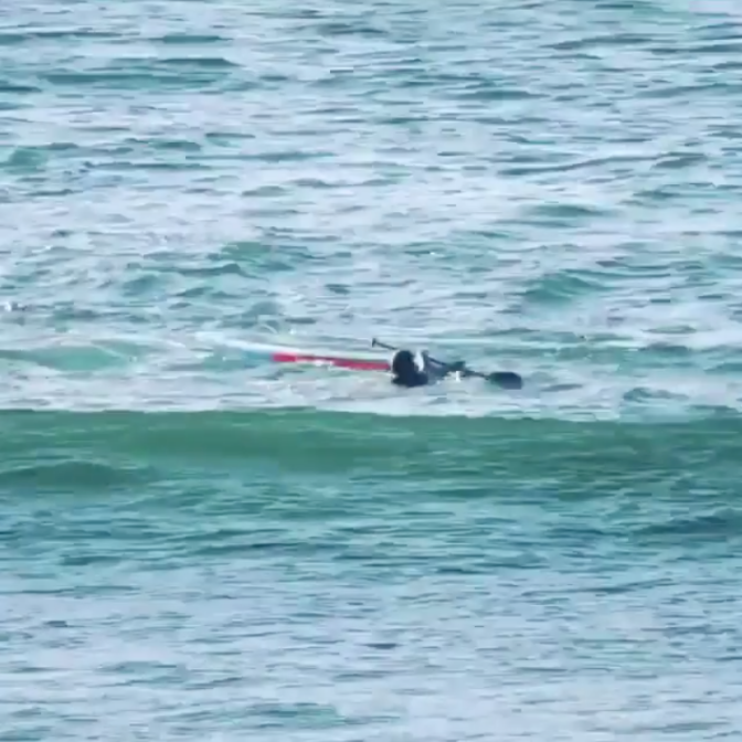 ▼準備立槳衝浪的男子以為牠們只會經過自己。