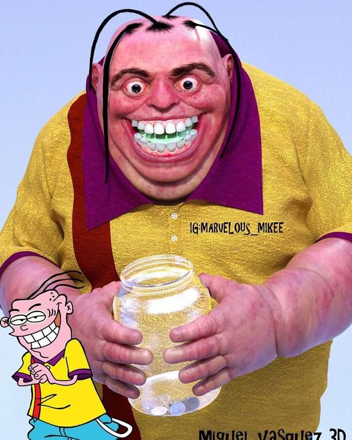 Miguel Vasquez喜歡把作品表現的現實、逼真,這些原本可愛的卡通人物變成3D真人版是不是讓你大吃一驚?更多作品請到他的IG帳戶marvelous_mikee上欣賞吧!