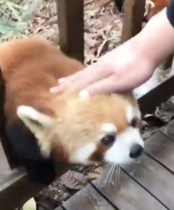 有著蓬鬆尾巴的小熊貓(或稱紅熊貓)是動物園裡的常客,外表長得像浣熊,但其實是一種獨立物種。由於前腳比較短,所以走起來會搖搖晃晃的,十分可愛。有網友拿食物誘惑小熊貓,而牠似乎也傻傻地追著食物「越獄」了!