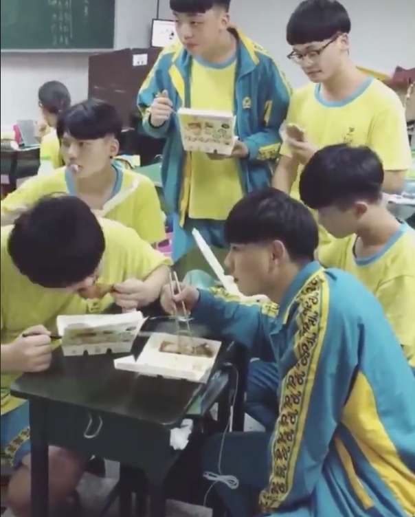 ▼隔壁的男同學憤怒的舉起手中的「筷子」,卻被同伴制止後無奈的放下,無奈的眼神代表了一切: