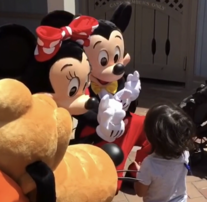 米奇和米妮真的很貼心,他們的回應打開了小男孩的心門。這一天對他來說,應該非常美好,也很難忘吧。