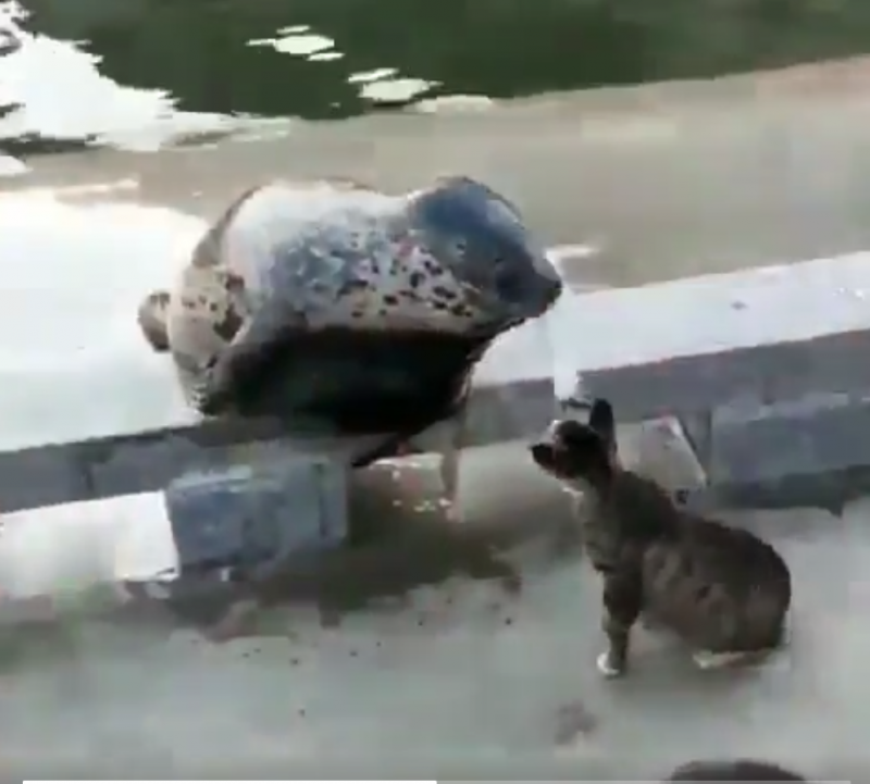 看到這樣的一幕網友們紛紛表示「太好笑了」、「超兇的貓咪」。傲嬌的「貓皇」遇上圖謀不軌的海豹完全沒有示弱,這樣霸氣的舉動不愧是傲嬌的主子。