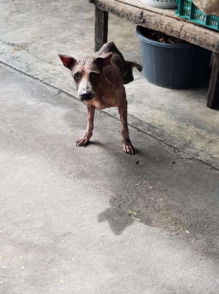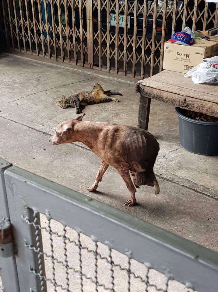 狗狗是一種樂觀、堅強的動物,牠們的生命力讓人非常敬佩。泰國有一隻叫Pey Pey的狗狗,牠年紀大了,還有皮膚病,身體狀況很差,只有2條前腿。但牠仍舊努力生活,沒有因命運的不幸而屈服。