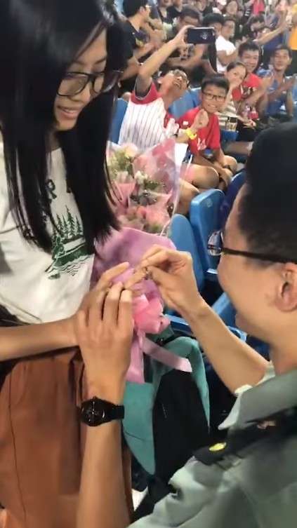 少校在桃園棒球場浪漫求婚成功 激動360度敬禮:謝謝滿場猿迷助攻