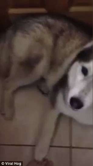 哈士奇聽到水聲就趴地耍賴 大聲跟馬麻抗議:就跟尼說我不要洗澡QQ