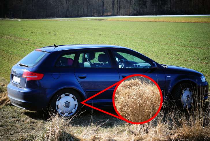 ▼4.在野外爆胎,可以用草臨時填充:如果在荒郊野嶺爆胎,就在輪胎兩側開洞,用草填滿。被破壞的輪胎當然報廢了,但至少能撐到回家。