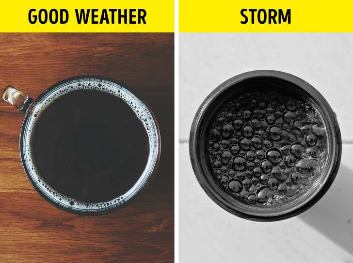 ▼3.看飲料判斷天氣:搖晃一下飲料,然後倒入杯子中,如果泡泡擴散到邊緣,說明今天天氣很好,如果氣泡集中在中央,說明暴風雨即將來臨。這是氣壓的影響,天氣好時氣壓高,陰雨天時氣壓比較低。