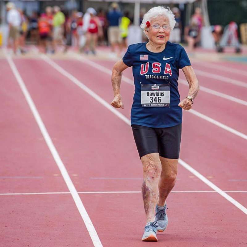 ▼102歲的Julia Hawkins,被稱為「颶風」的運動員。