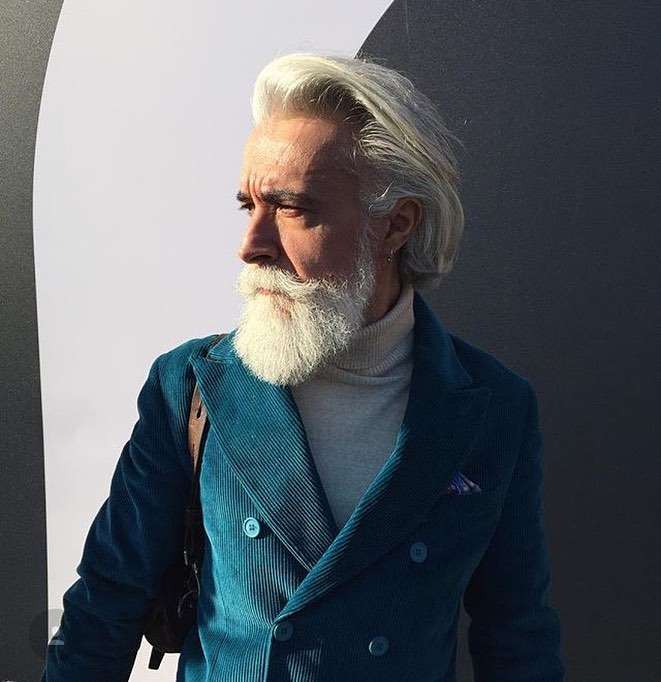▼這位帥氣的男模正是Alessandro Manfredini,49歲的他曾經是一名雕刻家和圖形設計師。優美的銀色鬍子成為他的標誌。