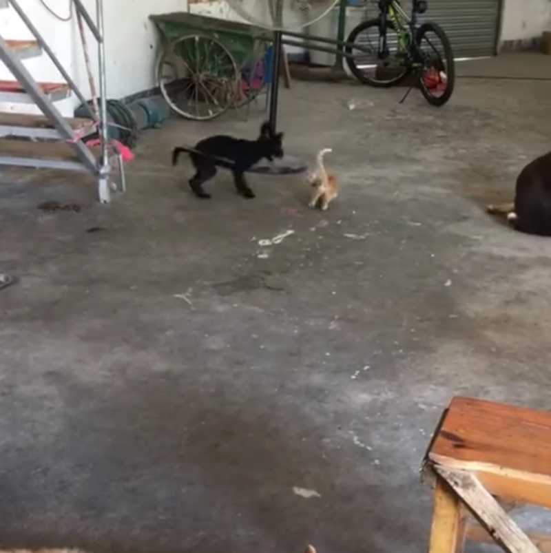 ▼面對擁有自由靈魂的貓咪,小黑汪受不了挑釁瞬間暴怒!