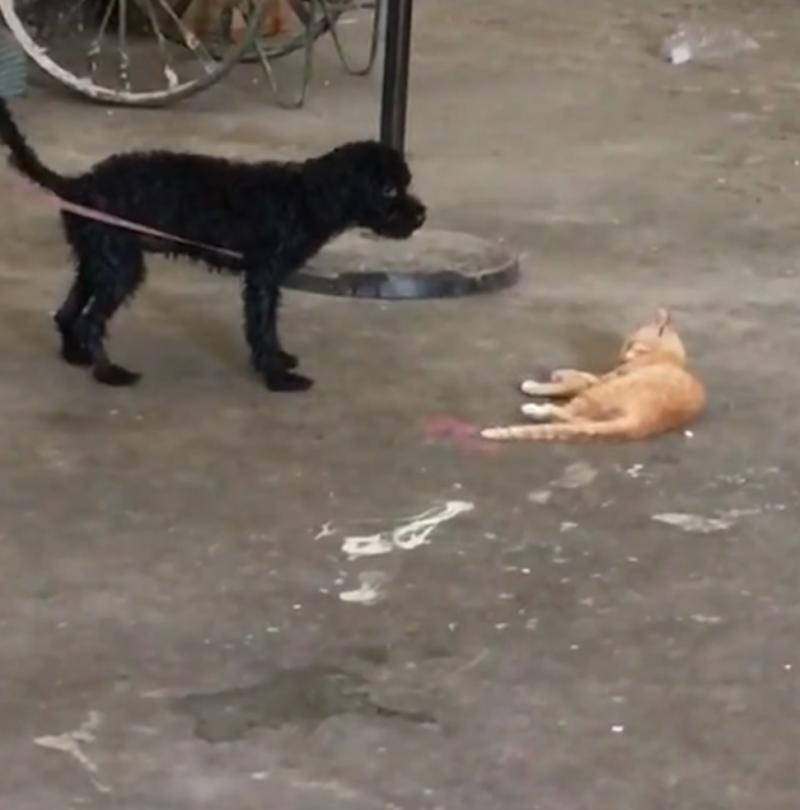 ▼這一汪一喵的互動真的太爆笑了啦!網友看了也神回:「世界上最遠的距離,就是你在我面前,我卻教訓不了你…」