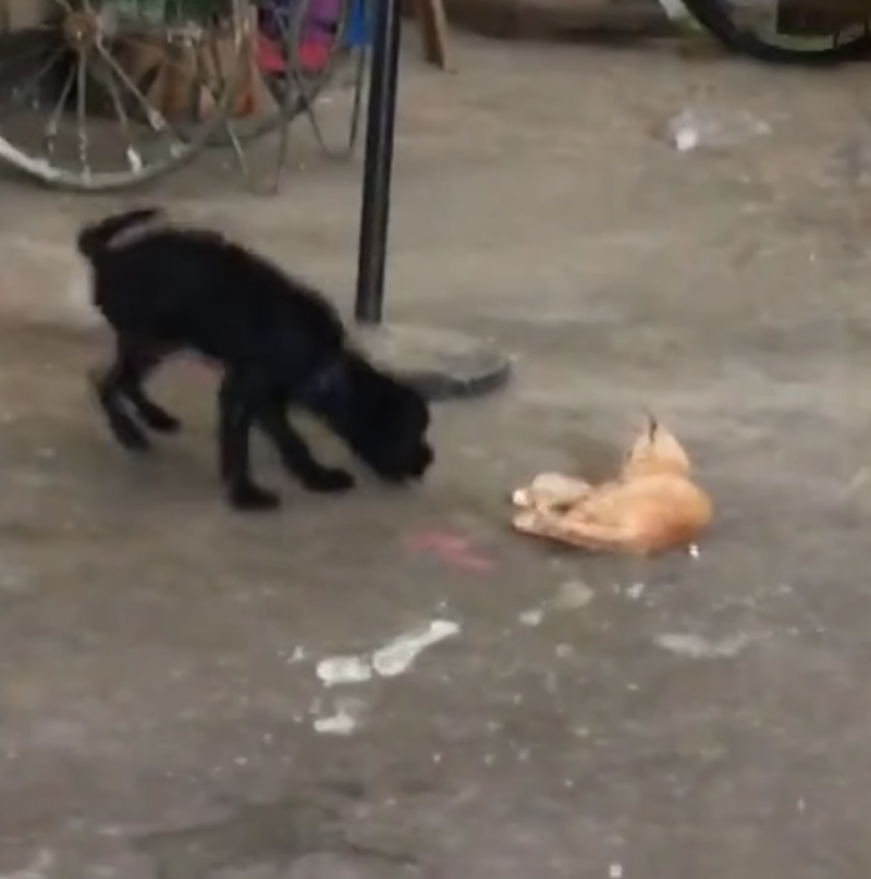 ▼可憐的小黑汪因為被綁著無法出去玩,結果一隻貓咪竟然故意走到牠面前,然後一臉壞壞地望著小黑汪。