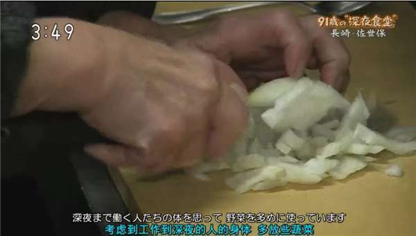 ▼為了照料這些深夜的人群,美佐子奶奶做菜總是會多加點料,並多放點蔬菜,讓進門的客人都能吃到熱呼呼、飽足的飯菜。即使是91歲的高齡,她做菜依然很靈巧,充滿熟練。