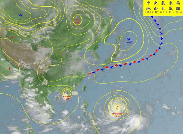 2018年09月12日位於台灣東南部海面的熱帶性低氣壓,增強為今年第23號颱風「百里嘉」(Barijat)。「百里嘉」已逐漸遠離台灣,但第22號颱風「山竹」卻以每小時21公里的速度,在西北太平洋向西移動,預計將在週六接近台灣。