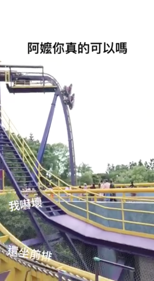 網紅郭郁承坐劍湖山G5前捕獲霸氣阿嬤!他們一行人在排隊已經嚇到發抖,卻傻眼看著一位霸氣阿嬤面無表情地坐在G5座椅上,態度狂到讓人無法忽視!要知道「飛天潛艇G5」非常恐怖,許多年輕人都不敢玩啊!