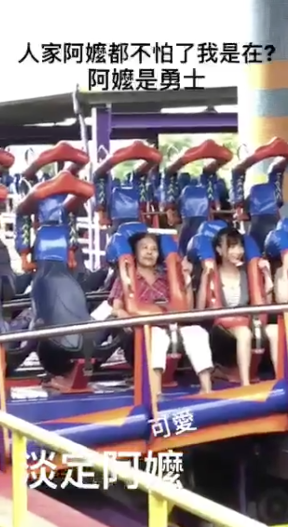 ▼霸氣阿嬤說玩就玩,說坐就坐,完全沒有半點猶豫和緊張。