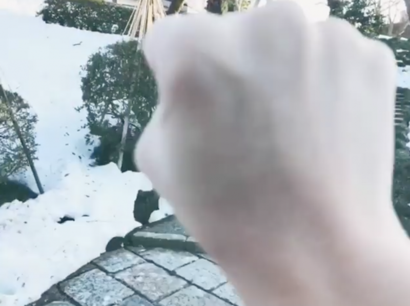 ▼換一個場景,同樣用手覆蓋鏡頭,這次做「放」的動作。記住,手一定要完全遮住鏡頭才不會穿幫!