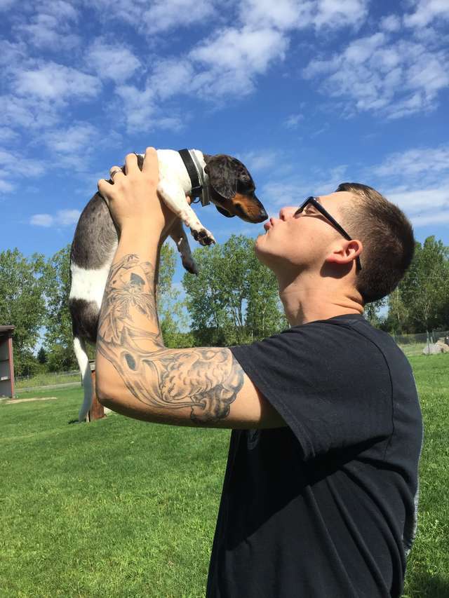 也許是這段經歷太過離奇,Fricker忍不住在Facebook發表了這段歷程: 「我:『哦~天哪,你的臘腸犬好可愛!她叫什麼名字呀?』SPCA停車場的人:『Dotty。我正要把她送到收容所,因為我跟太太將要有孩子了,我們不再需要這隻狗練習怎麼當小孩的父母了。你想要養她嗎? 』我:『呃……你認真的嗎?』然後,現在我有一隻臘腸犬了。」