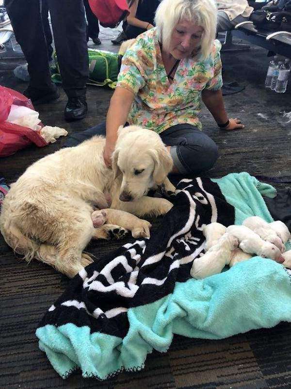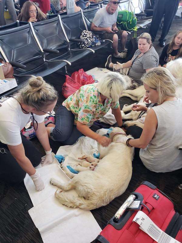 服務犬登機前一刻陣痛! 機場人員圍成「臨時產房」助牠生下8隻小寶寶