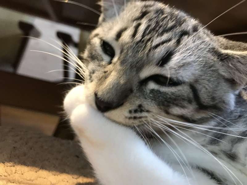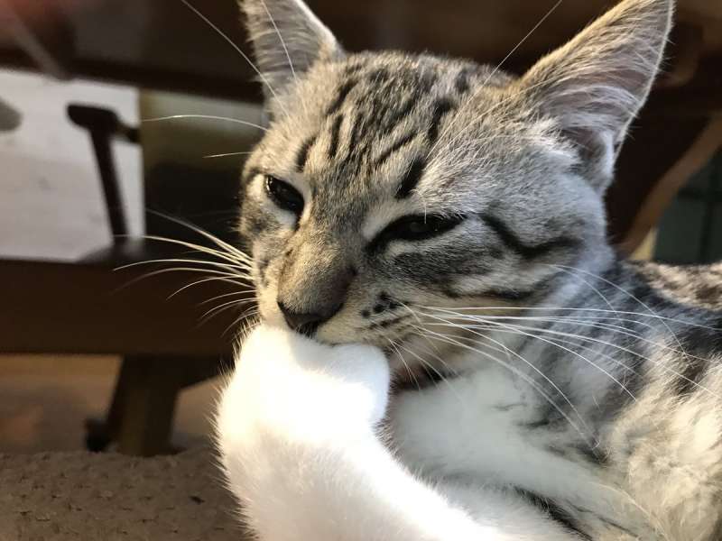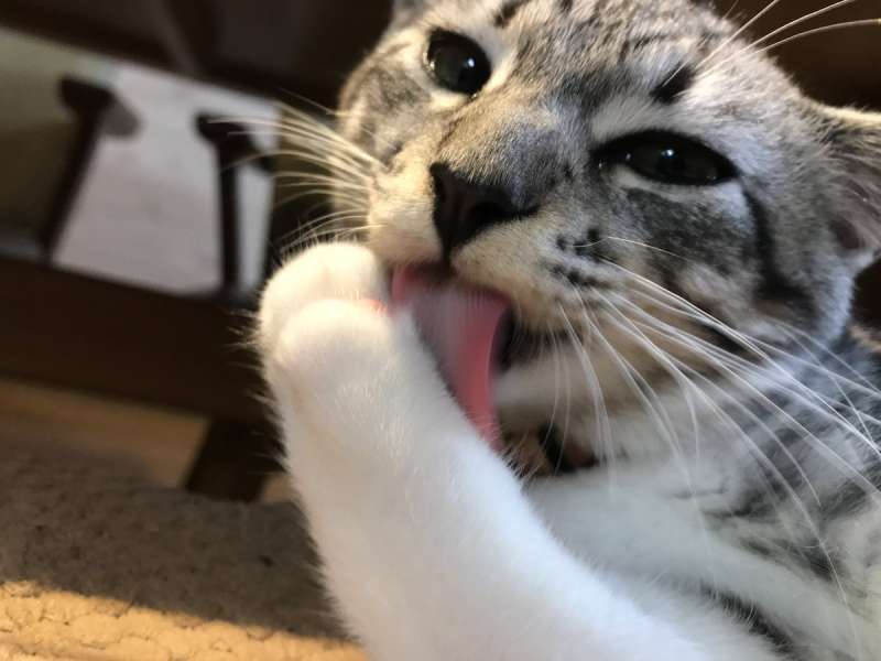 ▼不過還有一種說法,就是貓咪感覺壓力很大,不知道該如何排解,就吃手手發洩。