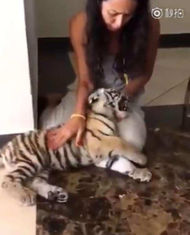▼無端端被打的小老虎,反應竟然不是生氣,而是跑到主人腳邊「哭訴」,可愛的模樣讓網友們都傻眼了。