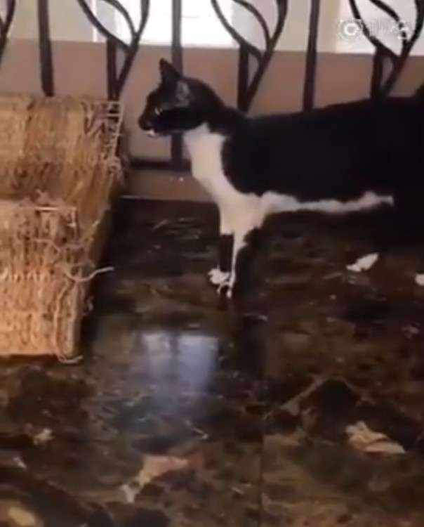 ▼影片一開始,這隻黑白貓發現主人帶了一個「新成員」回家,內心已經開始不爽了。