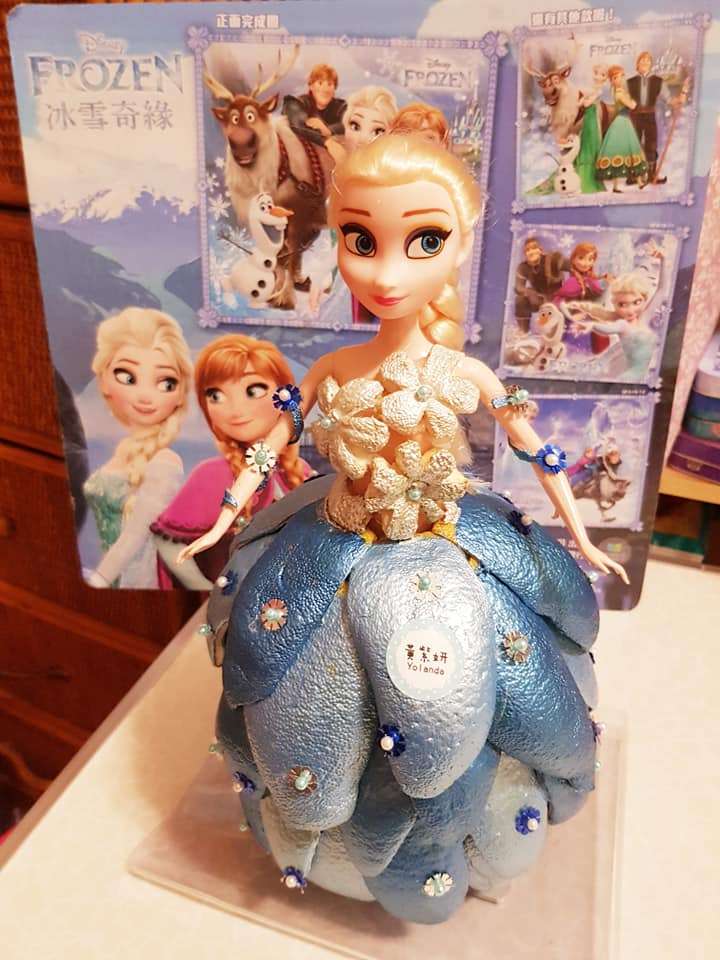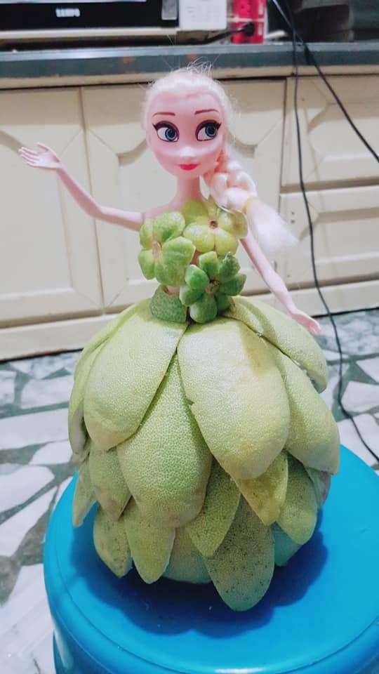 2018年09月18日距離中秋節的日子已經越來越近,許多家庭都開始吃柚子。幼兒園老師也因此要求小朋友可以用柚子皮發揮創意,交出充滿想像力的手作。「爆廢公社」一名媽咪黃詩涵就上傳了自己和女兒完成的神創意作品,「穿柚子裙的艾莎女王」!