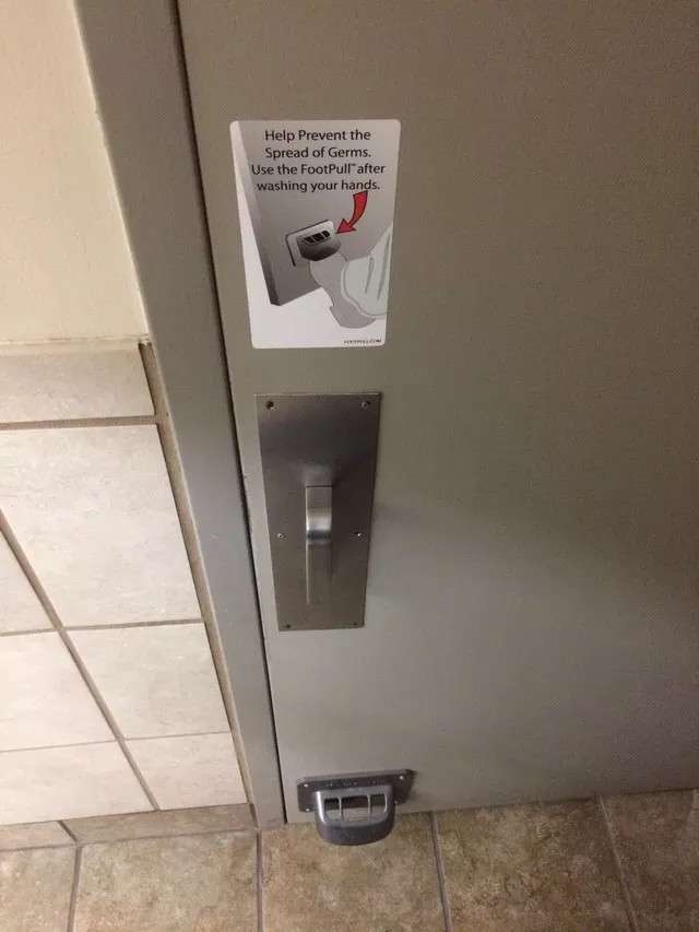 ▼公共廁所的門把手結合了消毒酒精,開門的同時給手消毒。