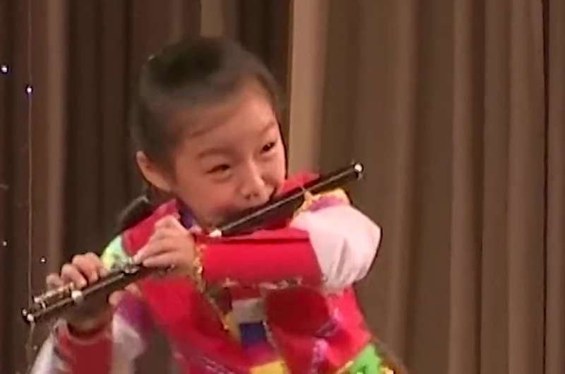 ▼小女孩連吹笛子也看的出來掛著燦爛的笑容。
