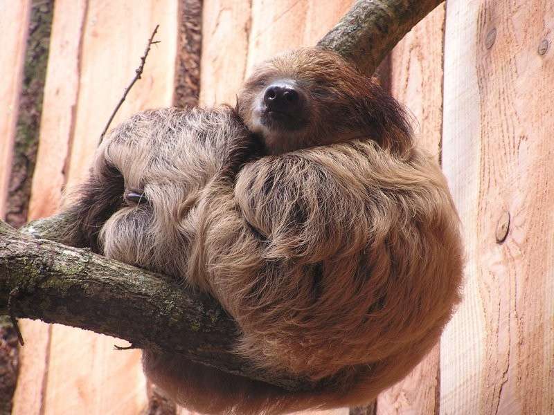 ▼樹懶外貌與猴相似,動作遲緩,常用爪倒掛在樹枝上數小時不移動,因此得名。主要分佈於中美和南美熱帶雨林,牠們雖然有腳但是卻不能走路,靠前肢拖動身體前行。