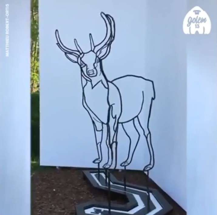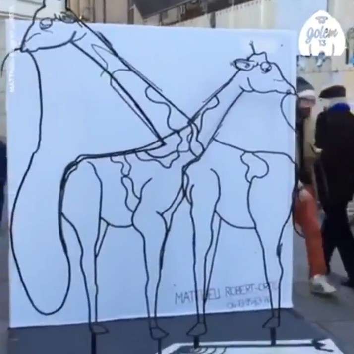 ▼來自法國的雕塑家Matthieu Robert-Ortis這個最有名的作品「La révolution des Girafes」,從正面看過去就只是普通的兩隻長頸鹿。