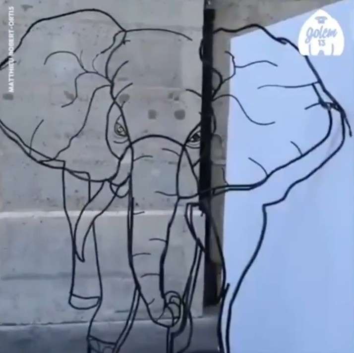 ▼可是當你走到長頸鹿的側面去看,會發現整個圖像變成了栩栩如生的大象!