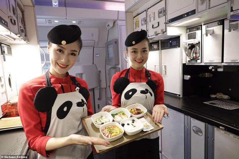 熊貓佔領的客機起飛了 彩繪、食物、空姐圍裙都有滿滿的熊貓特色