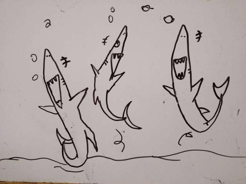 ▼那天起,綺綺就會把畫作中的恐龍當成是自己。施景中記得很多她畫的內容,像是恐龍媽媽正在教訓小恐龍、小恐龍掉頭髮掉牙齒…這些都是綺綺和爸爸媽媽的日常。