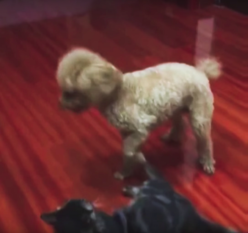 ▼狗狗的動作乾淨利落,貓咪徹底懵了。驕傲的喵皇沒想到自己會栽在一隻小貴賓的手上,在地上躺了好久,才跳起來轉身溜走,牠大概覺得很丟臉吧。