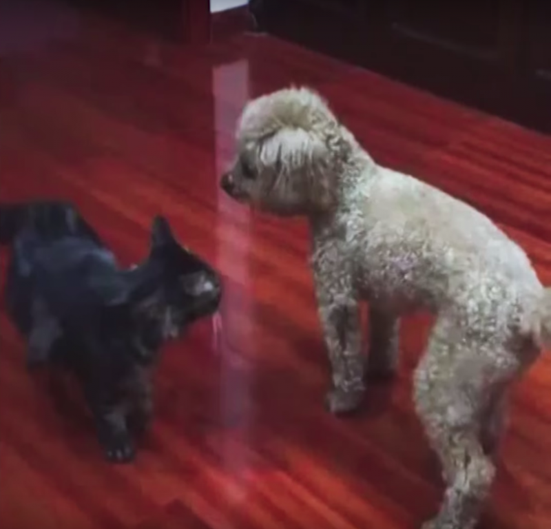 2018年09月28日家裡養貓又養狗的毛爸媽,經常能看到歡喜冤家的較量。貓咪靈巧聰慧,狗狗雖然體型比較大,但個性憨直,大多數時候都不是貓咪的對手。下面這隻可愛的貴賓卻打破魔咒,狠狠為狗狗爭了一口氣。
