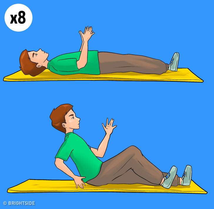 類似仰臥起坐,差別是讓原本平躺的身體做出類似跑步的動作。