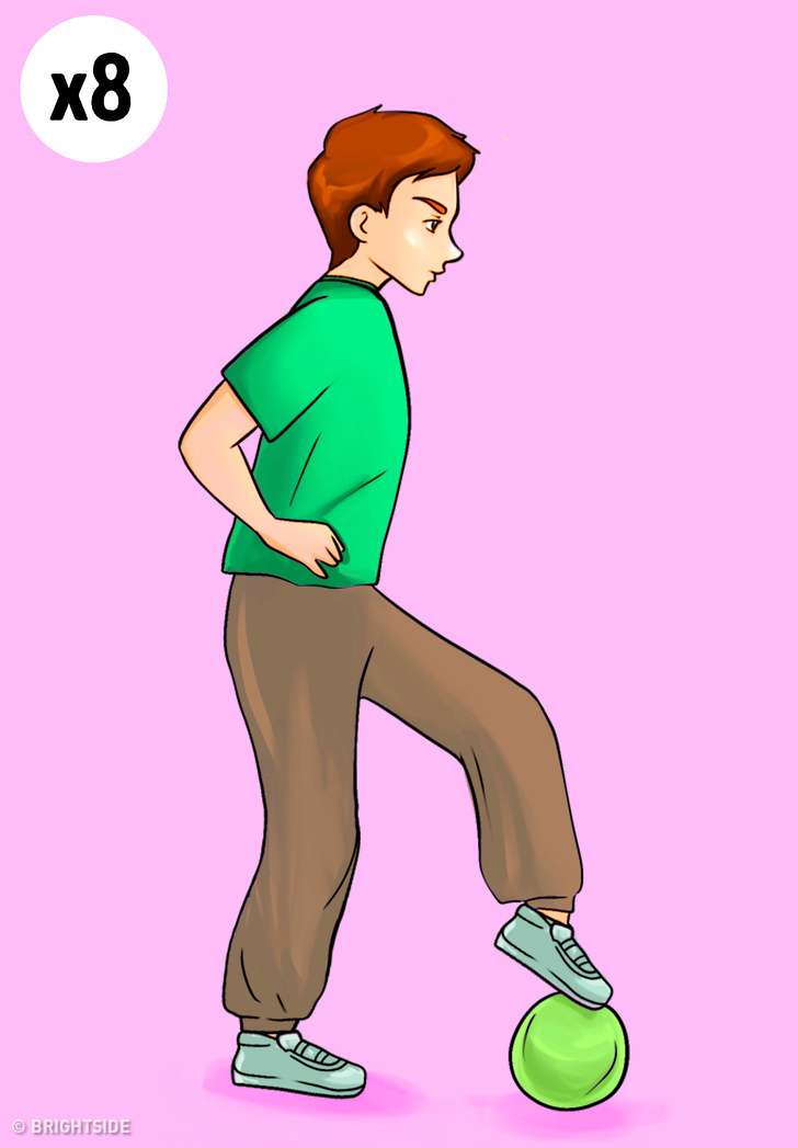 這個動作需要一顆球,將球放在地上用一隻腳趾固定住,接著連續換腳跳躍將球固定在原處。