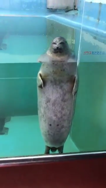 2018年09月30日日本小樽水族館裡面驚見一隻站立不動直盯人看的海豹,陰森森的模樣跟電影鬼修女有87%像,網友錄下該段影片在Twitter趣道:「我很害怕。」不管網友往左往右,海豹的一雙大眼都直勾勾的盯著他,但其實仔細一看,海豹大大的眼睛其實超級卡哇伊的,影片中網友一靠近拍攝,海豹竟然害羞得不敢直視,還玩起自轉一圈的把戲,完全看不到剛才漠然直視的身影阿!