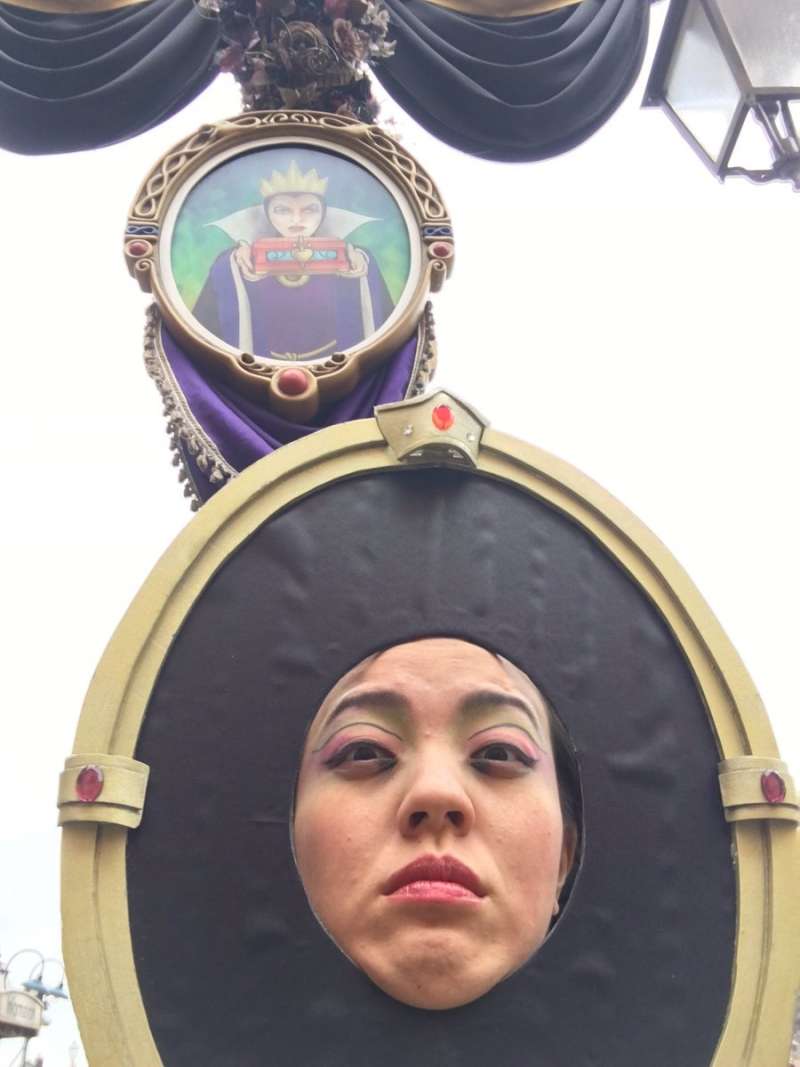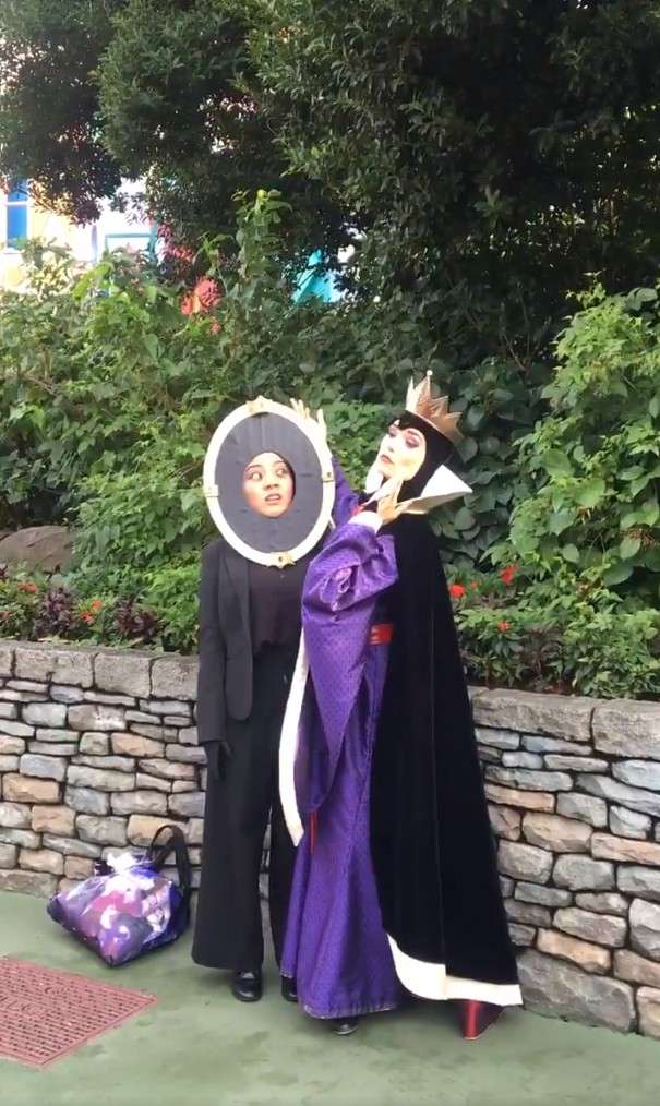 迪士尼真是一個充滿夢幻的地方,沒想到壞皇后和魔鏡的對話會在現實生活中上演,這一幕就只會發生在迪士尼樂園!