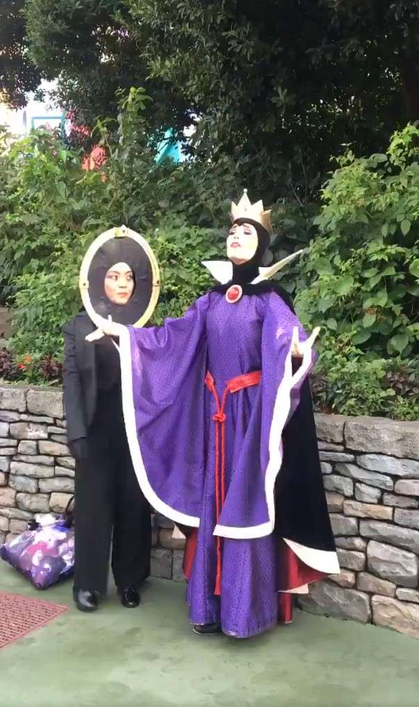 女孩神Cosplay「魔鏡」去迪士尼 合體壞皇后一起演經典戲碼