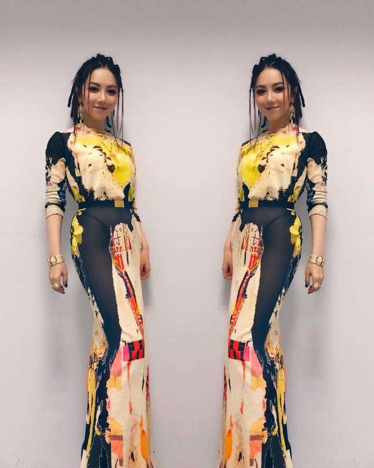 ▼節目播出隔天,鄧紫棋在臉書po出表演當天的照片,說:「《倒數》的首次現場表演~誰看了?P.S.裙子的亮點請自行尋找。」她身上的長洋裝下半部分採用黑色透膚的布料,定睛看去,裡面搭的竟然是丁字褲!
