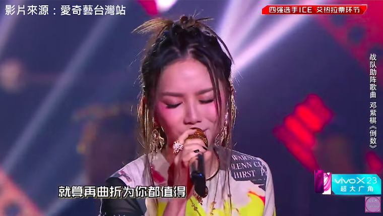 2018年10月02日大陸選秀節目《中國新說唱》即將進入尾聲,不僅選手們使出渾身解數,各位製作人也火力全開,為戰隊助陣。身為製作人陣容中唯一的女性,鄧紫棋特別上台演唱《倒數》,展現超強實力。